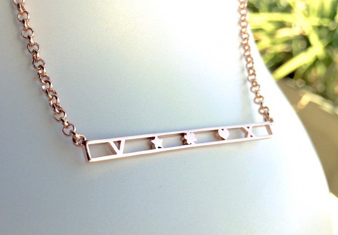 REVERSE CUT BAR NECKLACE IN ROSE GOLD PLATE