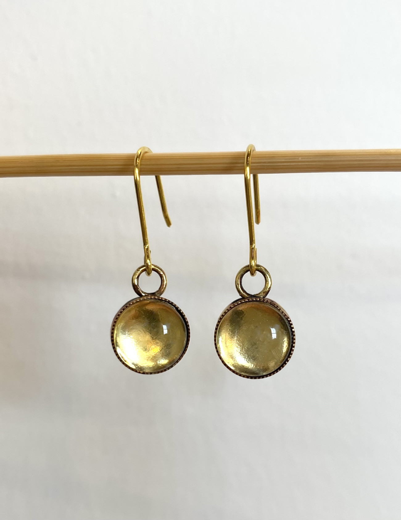 Materials: Italian glass crystals, hyper allergenic gold plated hooks, antiqued brass setting