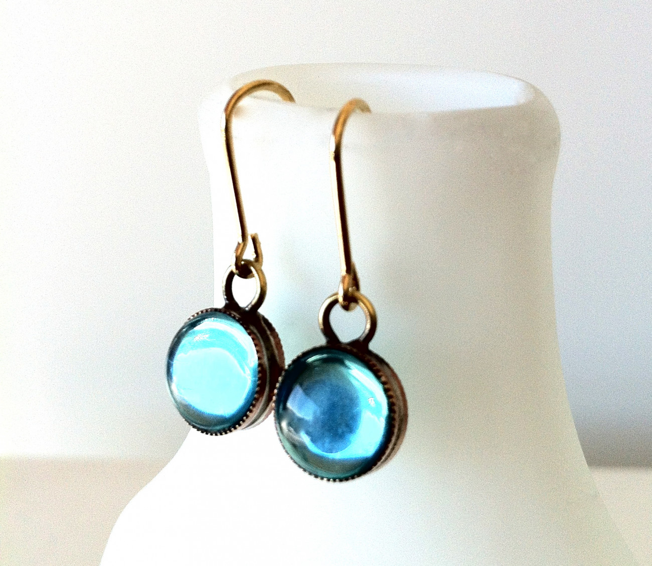 Double sided Bambina Earrings featuring our shiny turquoise crystal both sides. Setting 10 mm diameter.