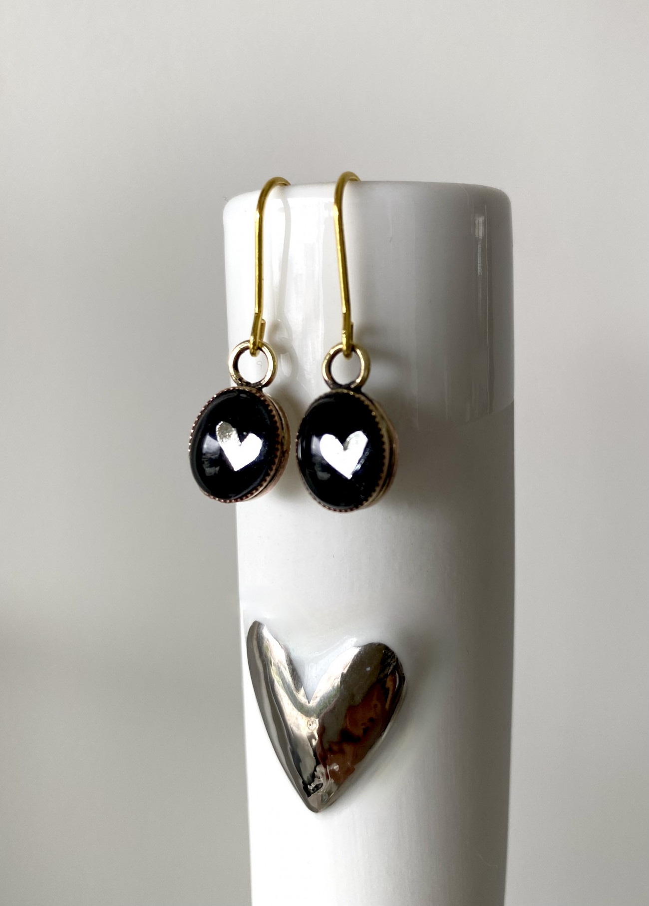 OVAL BAMBINA EARRINGS - BLACK WITH HEART