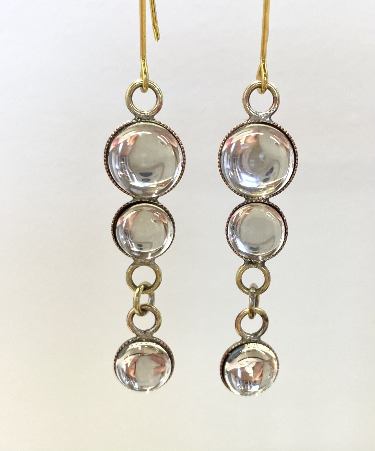 Materials: antiqued brass with Italian glass crystal. Hypoallergenic gold plated hook.