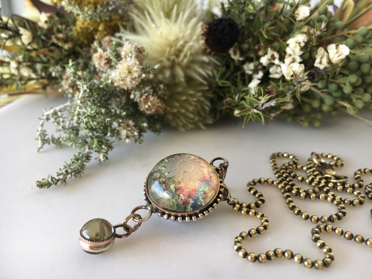 CRYSTAL BEADED PENDANT IN DUSKY FLORAL
