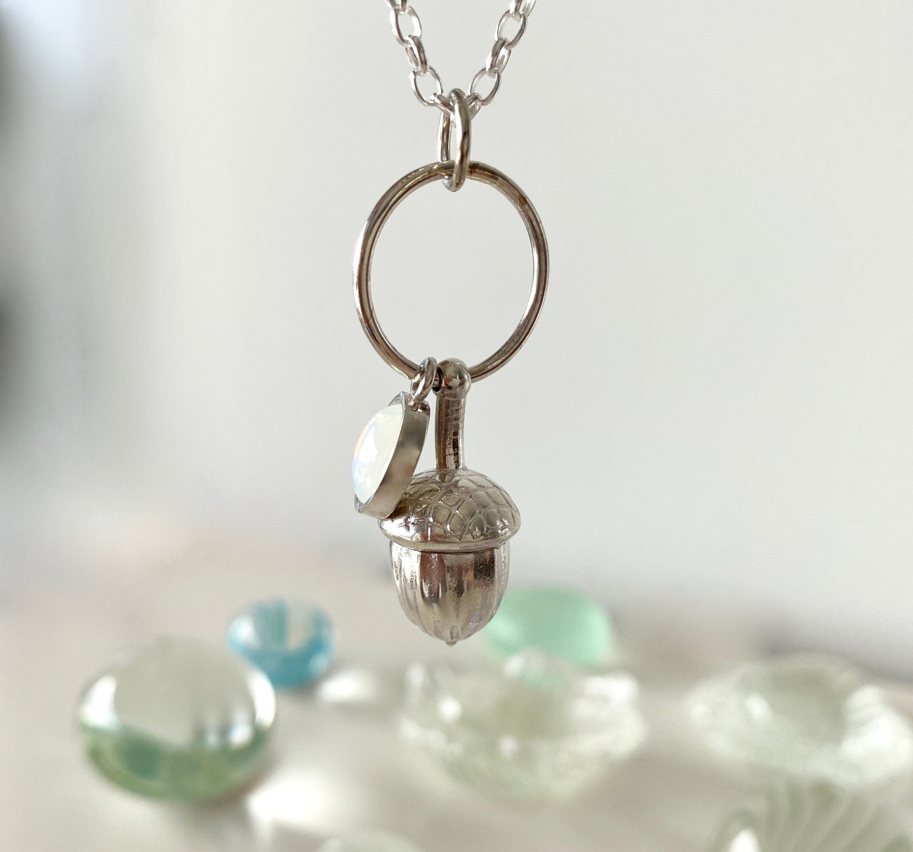 Shop / LISA HOSKIN STERLING SILVER PENDANTS & NECKLACES / ACORN PENDANT WITH OPALESCENT CHARM