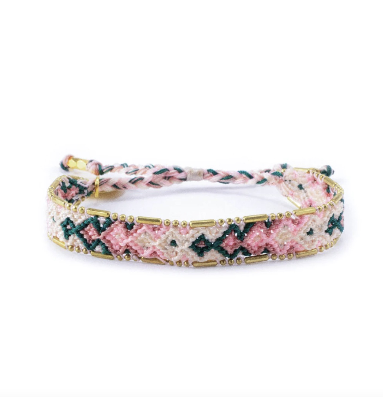 These beaded and hand-woven bracelets are made by fair-trade female artisans in Bali, Indonesia, and feature an adjustable pull-tie closure and a dainty Love Is Project tag made of beautiful brass.