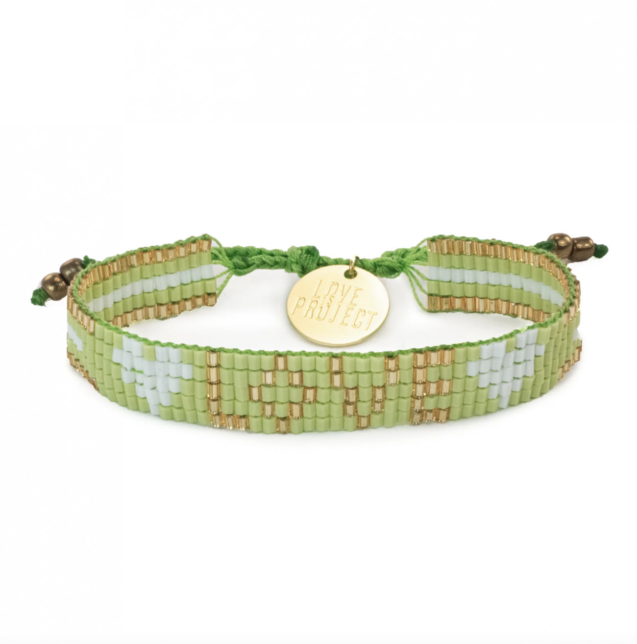 Shop / LOVE IS PROJECT / SEED BEAD LOVE BRACELET WITH HEARTS - LIME