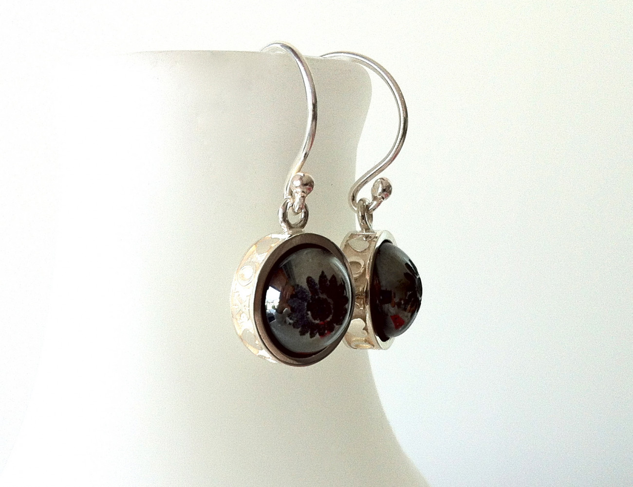 STERLING SILVER SERENITY EARRINGS IN BLACK PEARL
